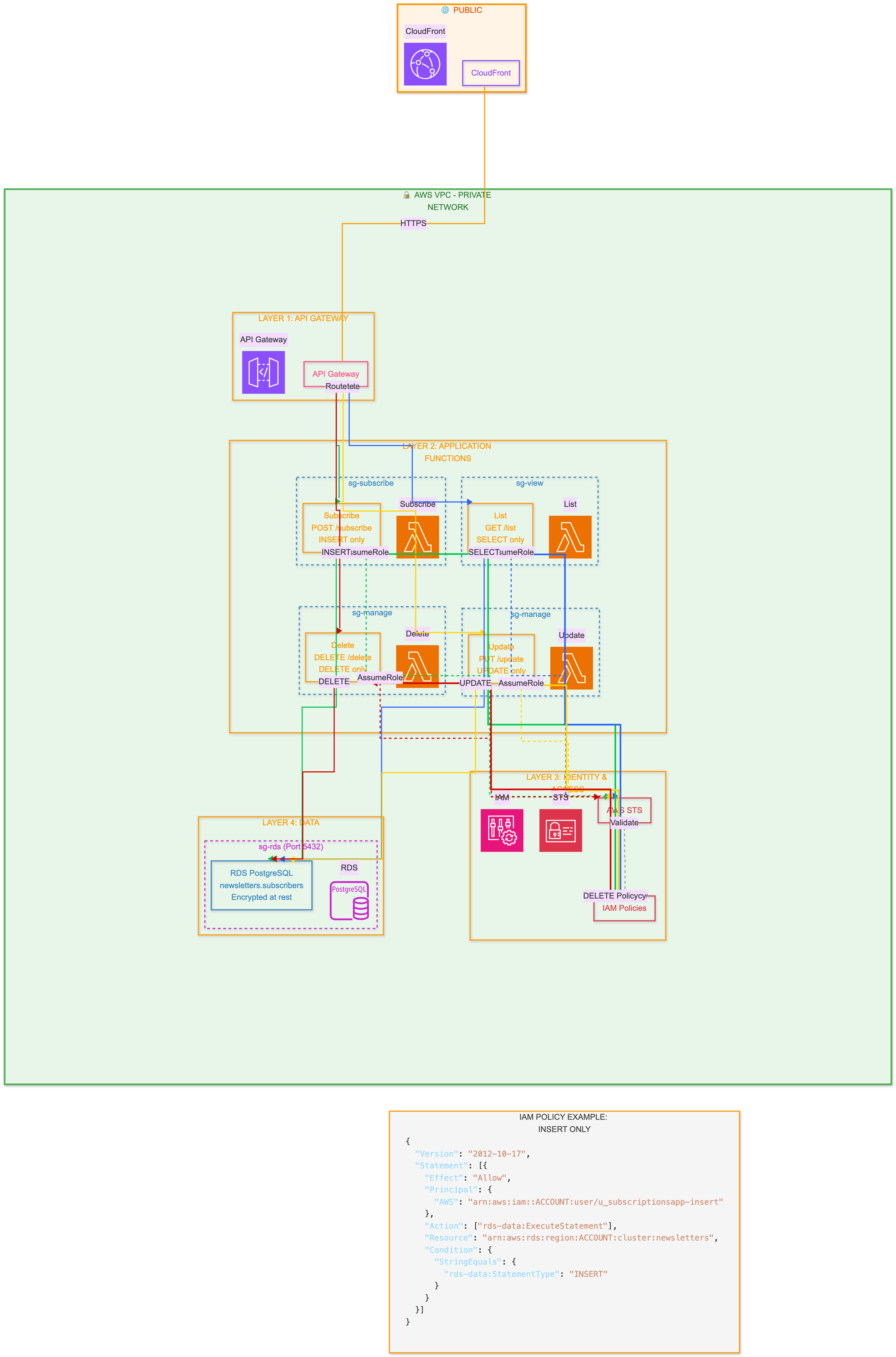 }— here we’re just granting the insert permission to the ingeniously named u_subscriptionsapp-insertz user, on the newsletters RDS database.